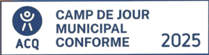 Notre camp de jour se conforme aux exigences du Cadre de référence pour les camps de jour municipaux et adhère aux principes qui les édictent. Ce Cadre de référence comporte 50 balises obligatoires définissant les meilleures pratiques à adopter afin d’assurer la sécurité et la qualité de l’expérience des programmes de camps de jour municipaux. Nous adhérons également au programme Tremplin Santé.